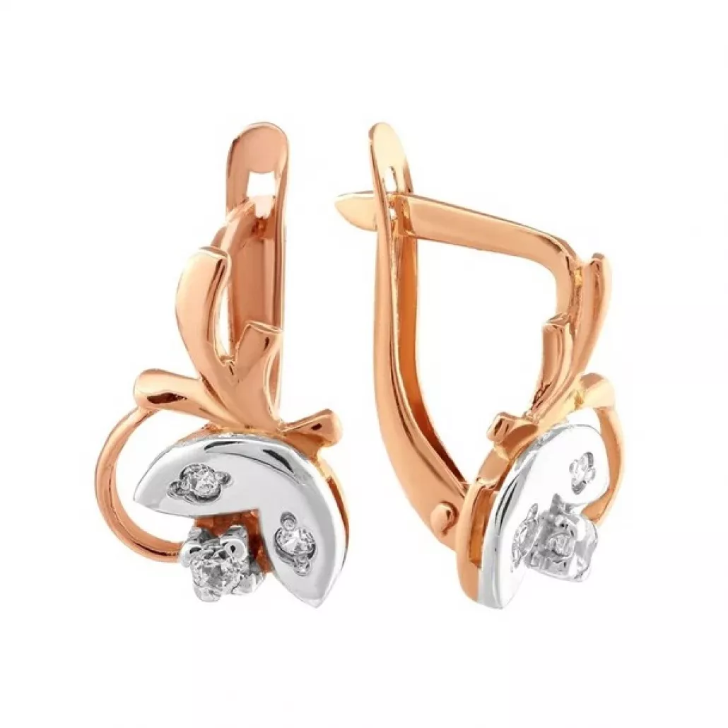 Золотые серьги 585, женские, с фианитом
