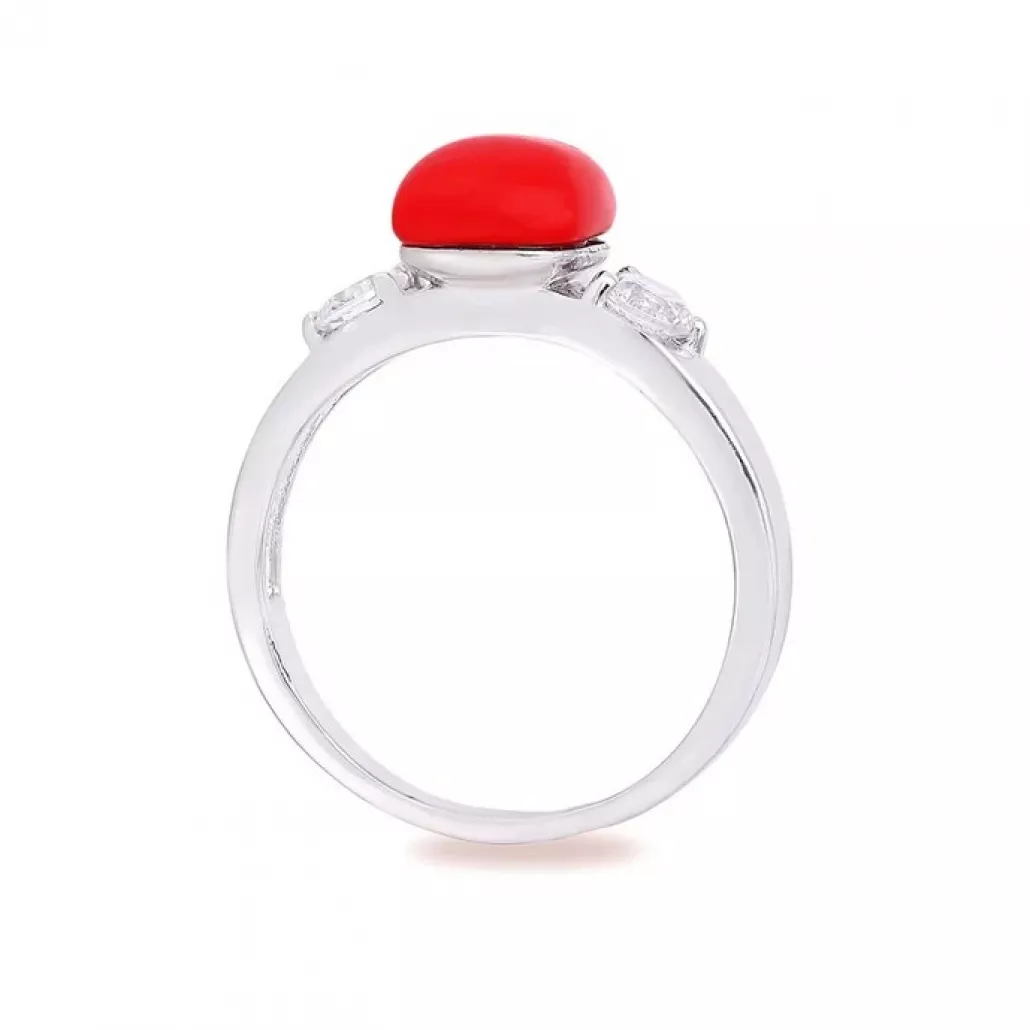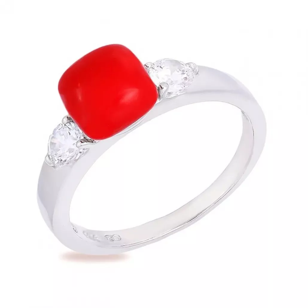 Кольцо с кораллом и фианитом из серебра