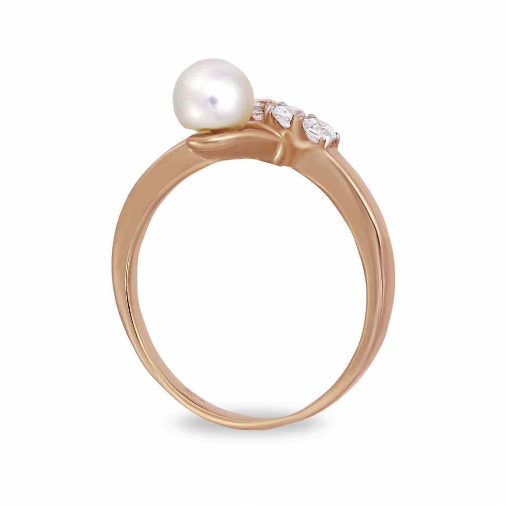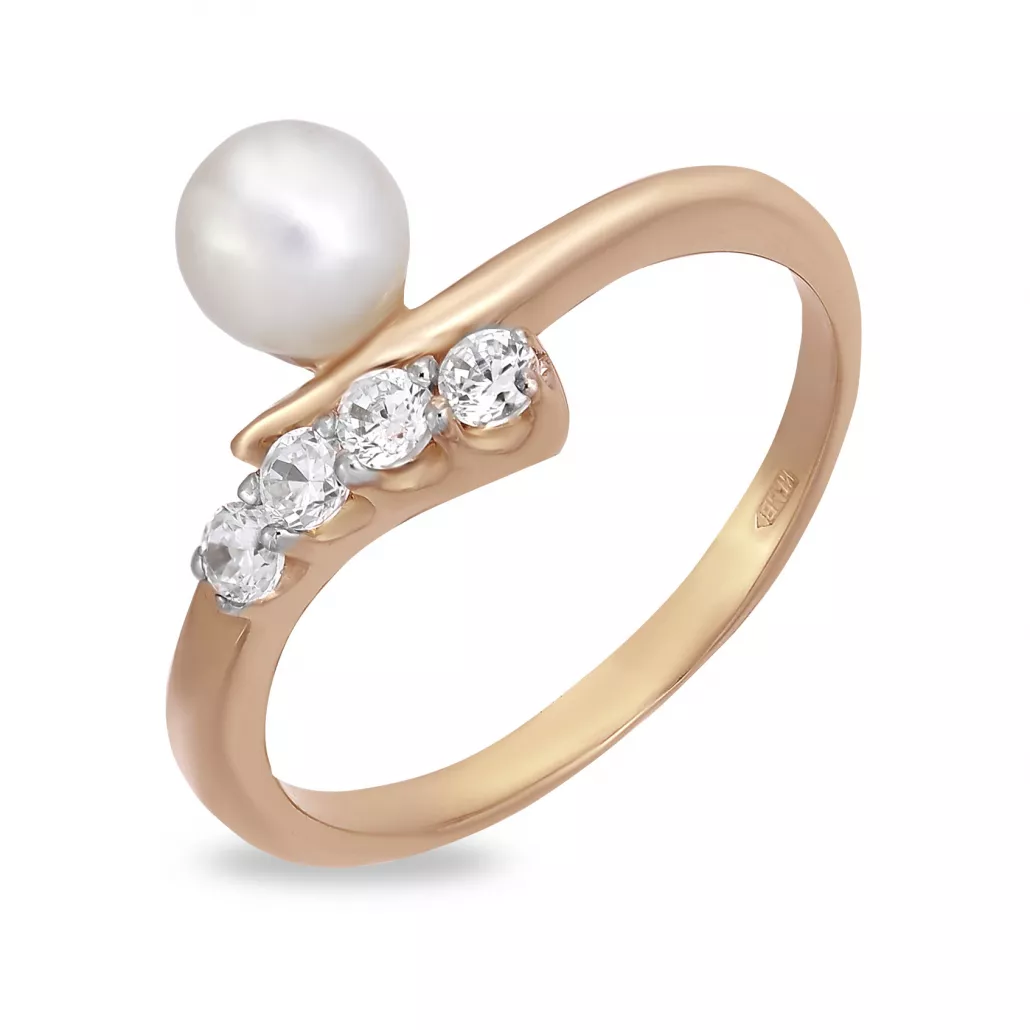 Кольцо с жемчугом и фианитом из золота Артикул: 1305215211пд