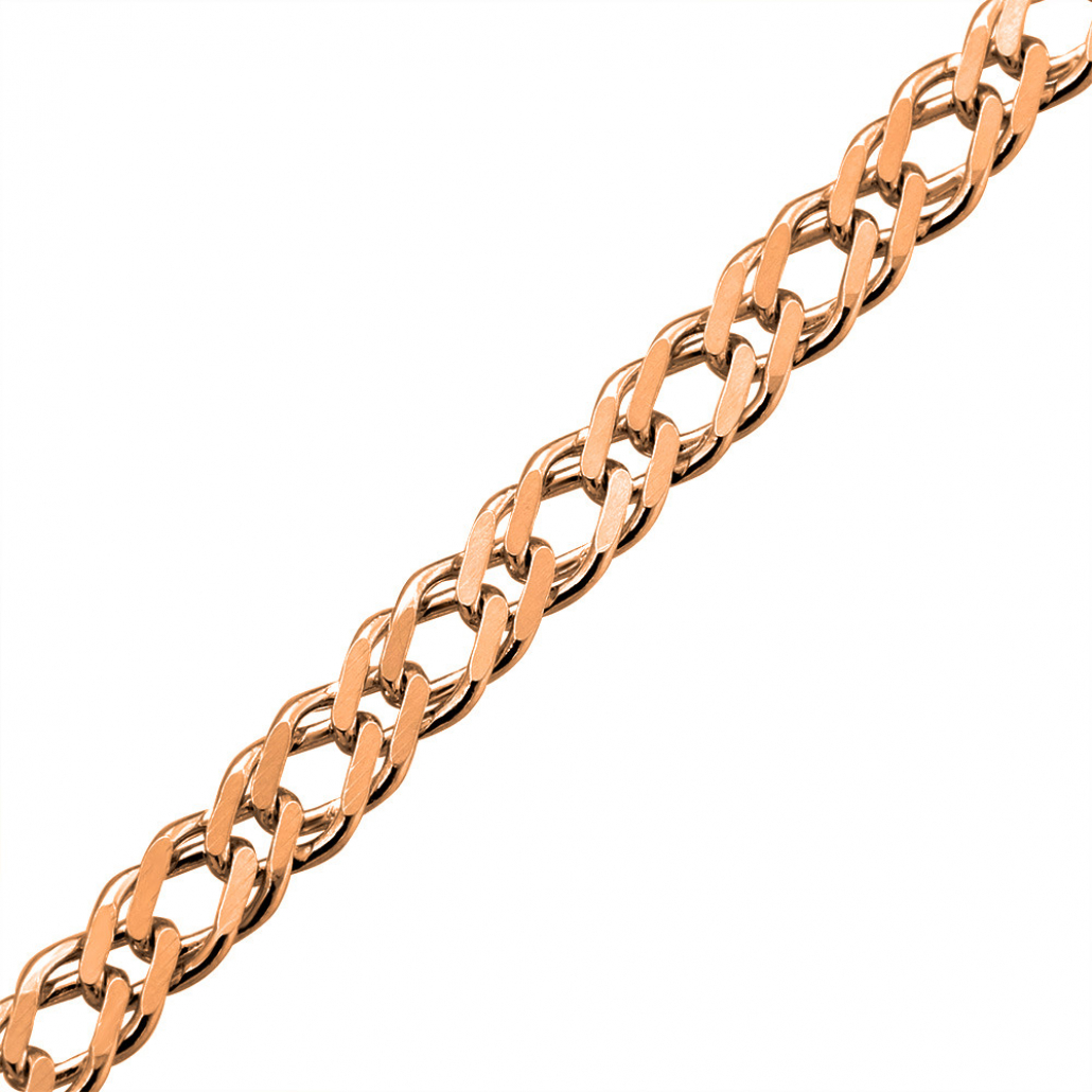 - Золотая цепочка 585 на шею, плетение двойной ромб пустотелый, длина 50 см, цвет красное золото