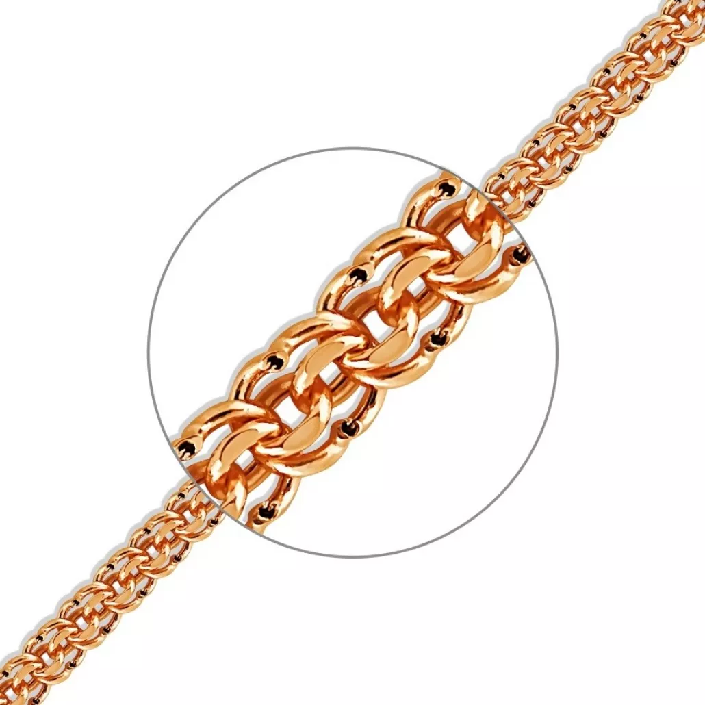 - Золотая цепочка 585 на шею, плетение бисмарк, длина 50 см, цвет красное золото