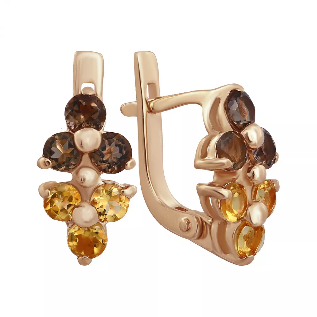 Золотые серьги 585, женские, с раухтопазом и цитрином