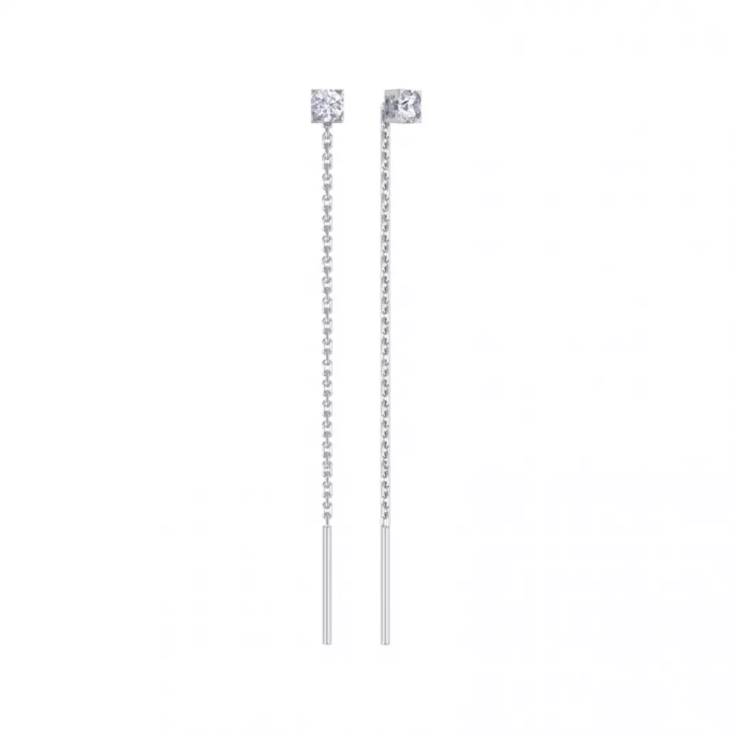 - Серьги-продевки с фианитом из серебра