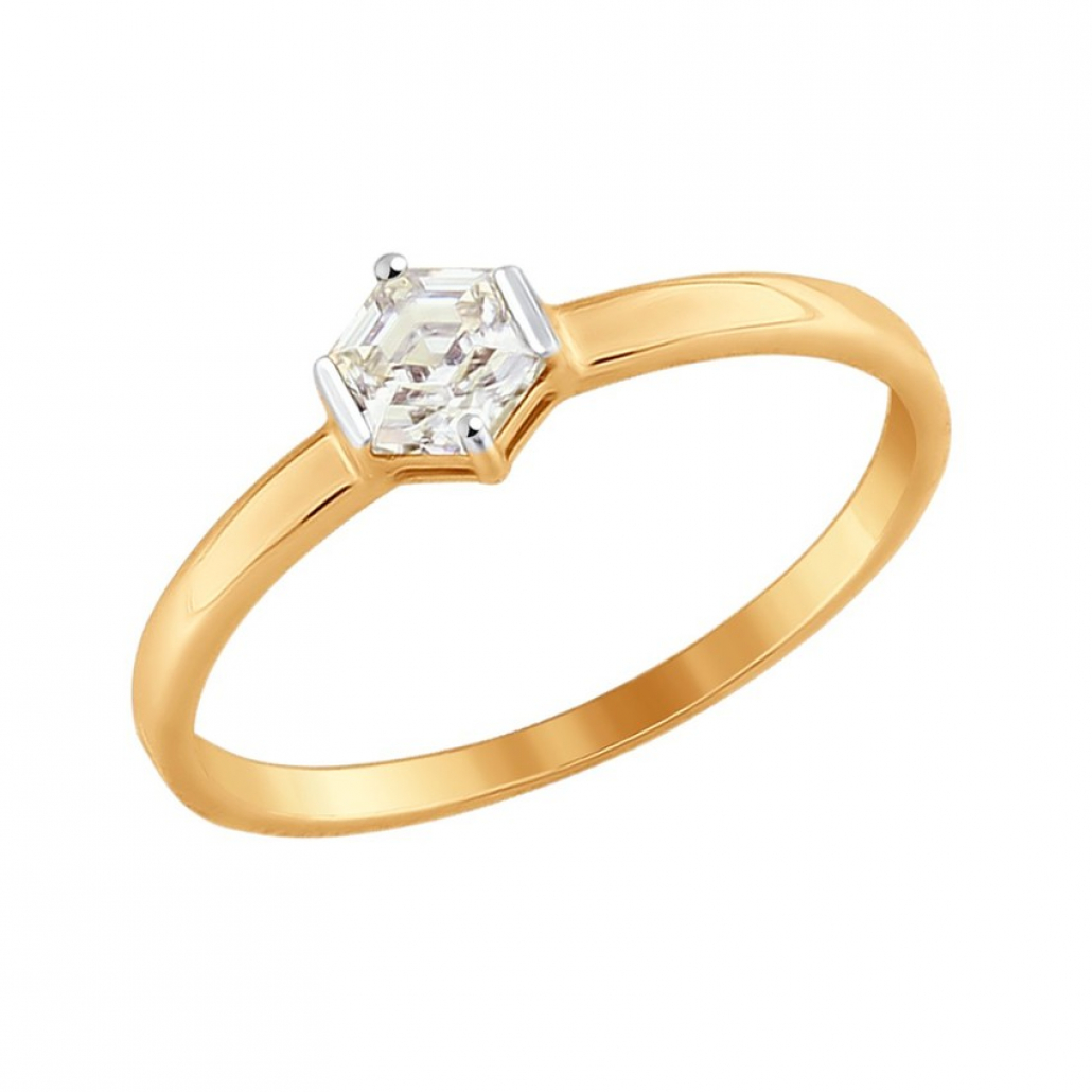 Золотое кольцо 585, женское, с фианитом, размер 16