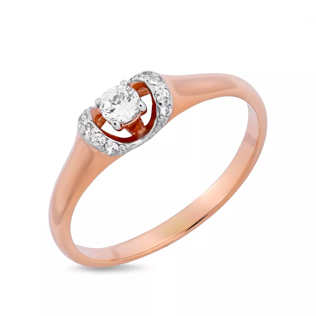 Золотое кольцо 585, женское, с фианитом, размер 16.5