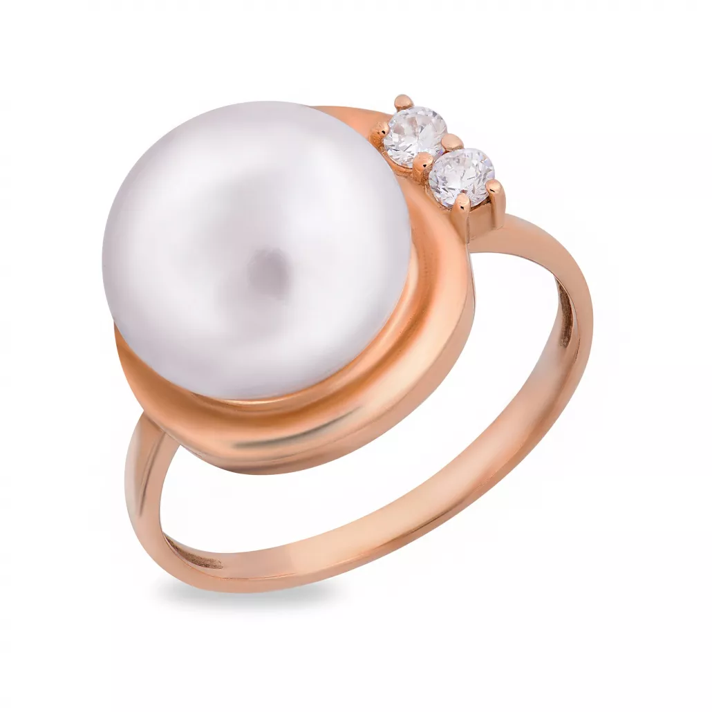 - Золотое кольцо 585, женское, с жемчугом и фианитом, размер 18