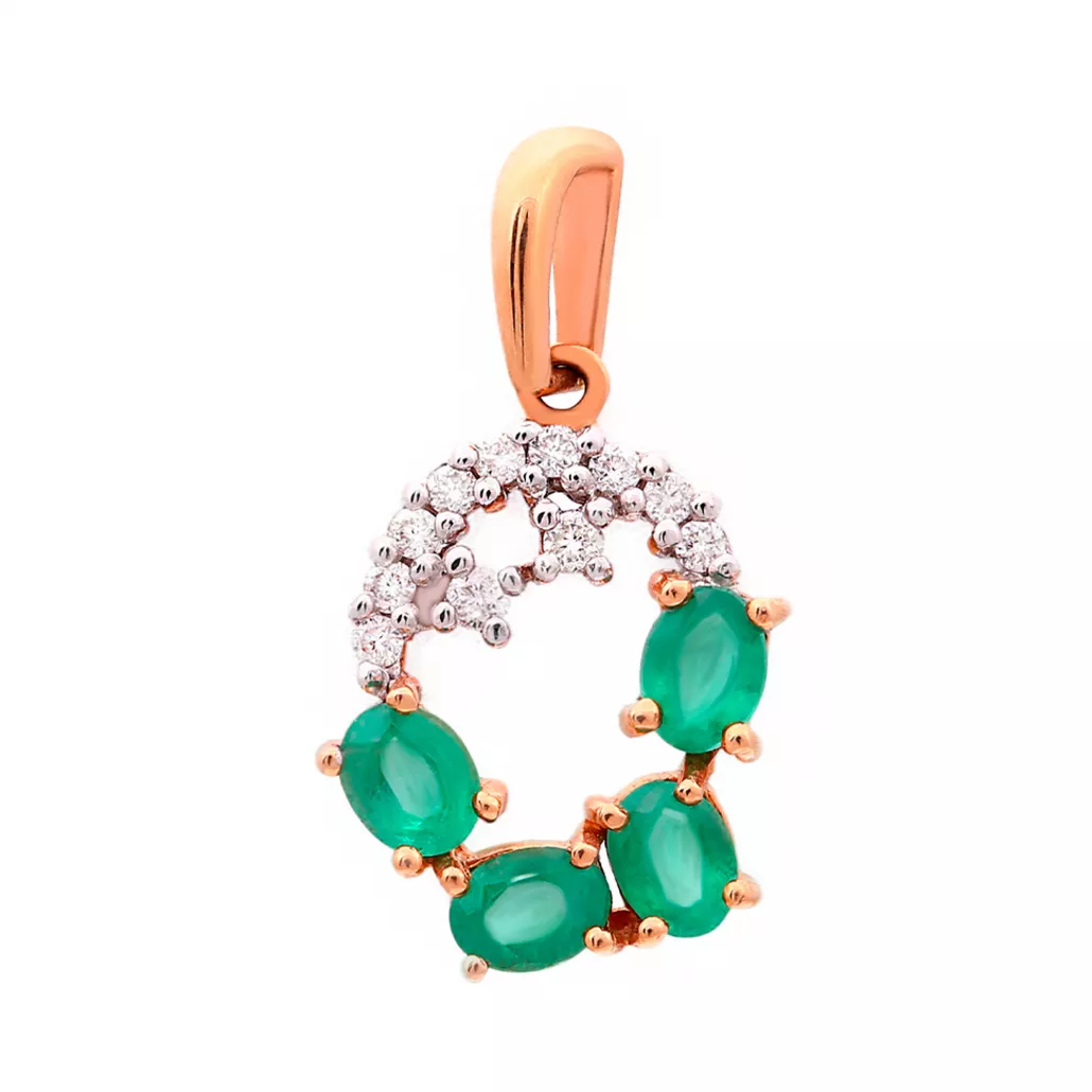- Золотая подвеска 585, женская, с бриллиантом и изумрудом