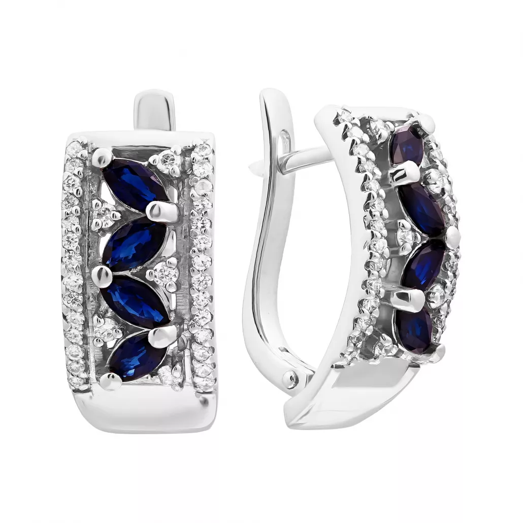 - Серьги с бриллиантами с сапфиром из золота
