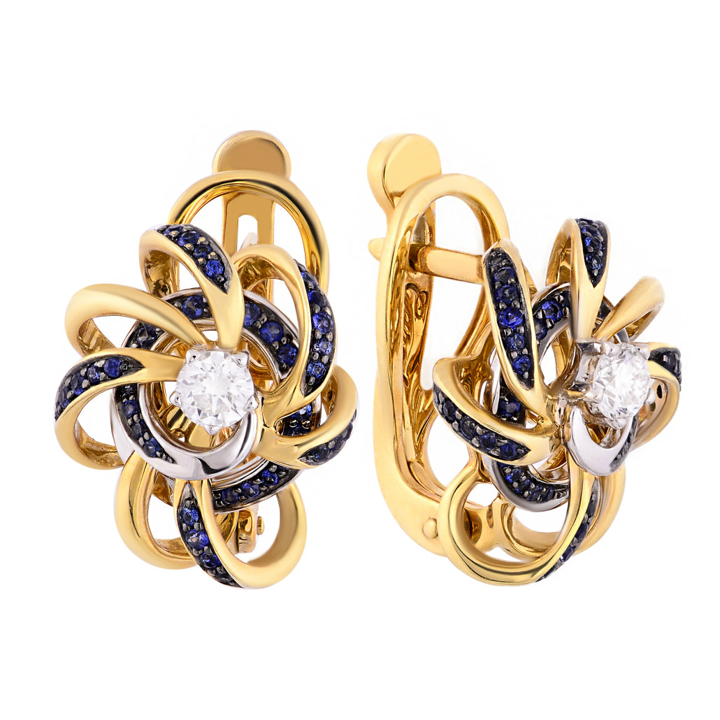 - Серьги с бриллиантами с сапфиром из золота