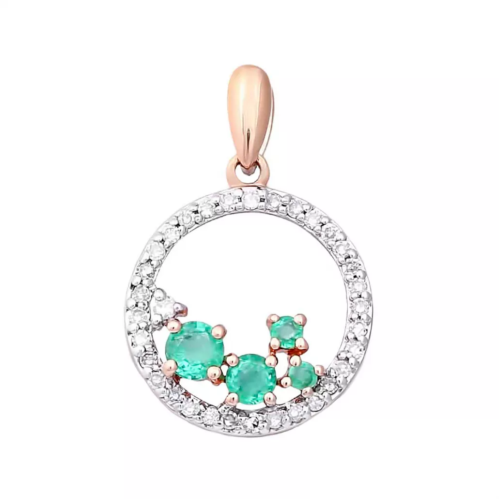 Золотая подвеска 585, женская, с бриллиантом и изумрудом