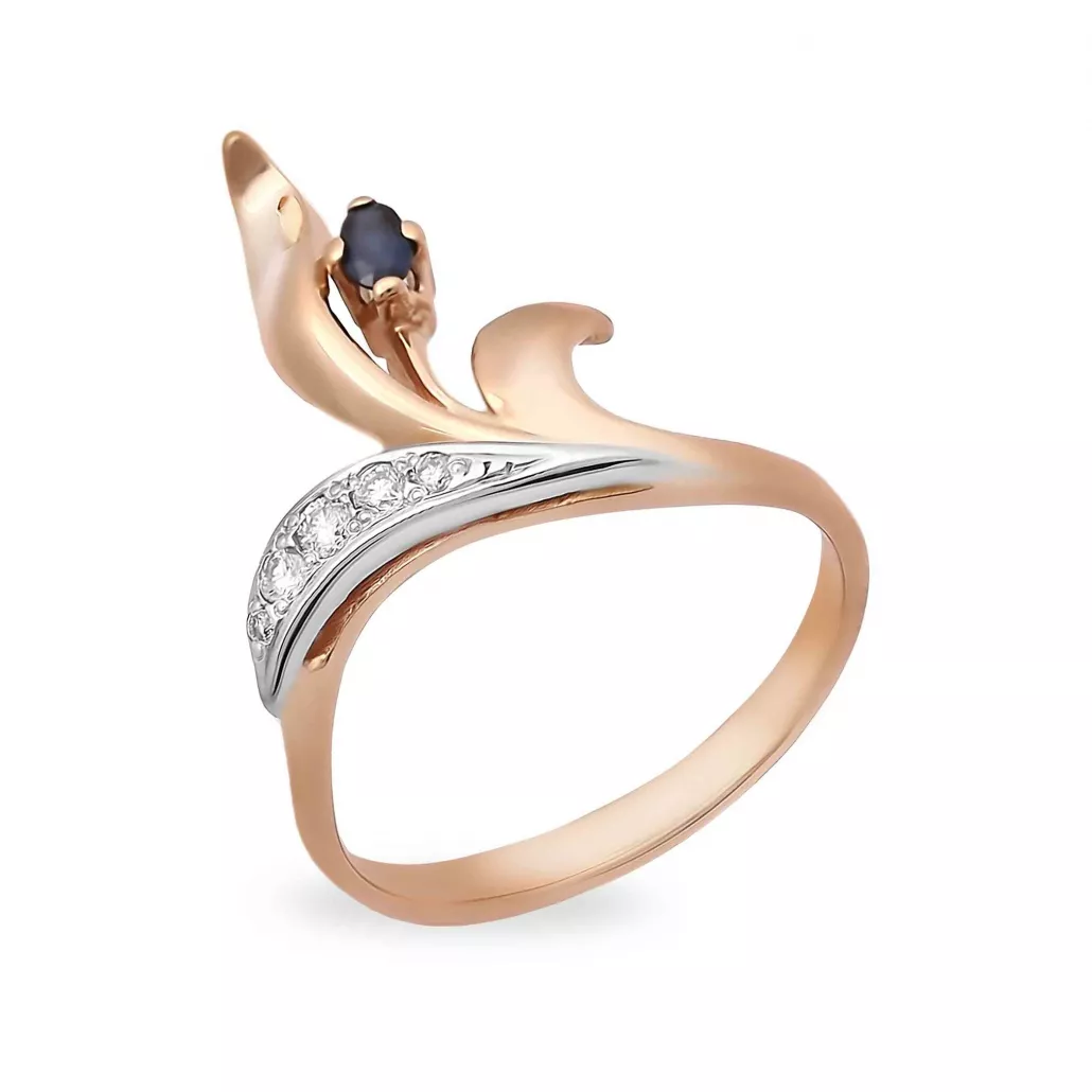 - Кольцо с бриллиантами с сапфиром из золота