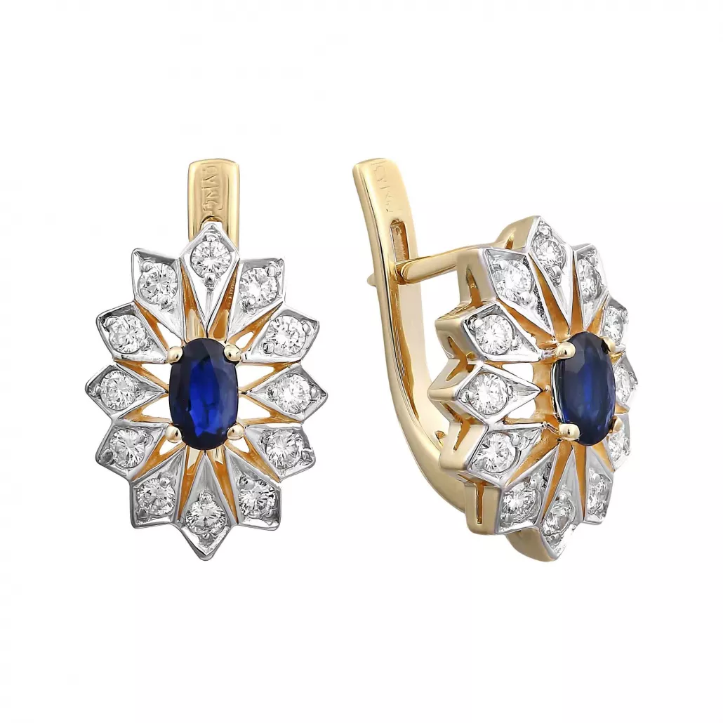 - Золотые серьги 585, женские, с бриллиантом и сапфиром