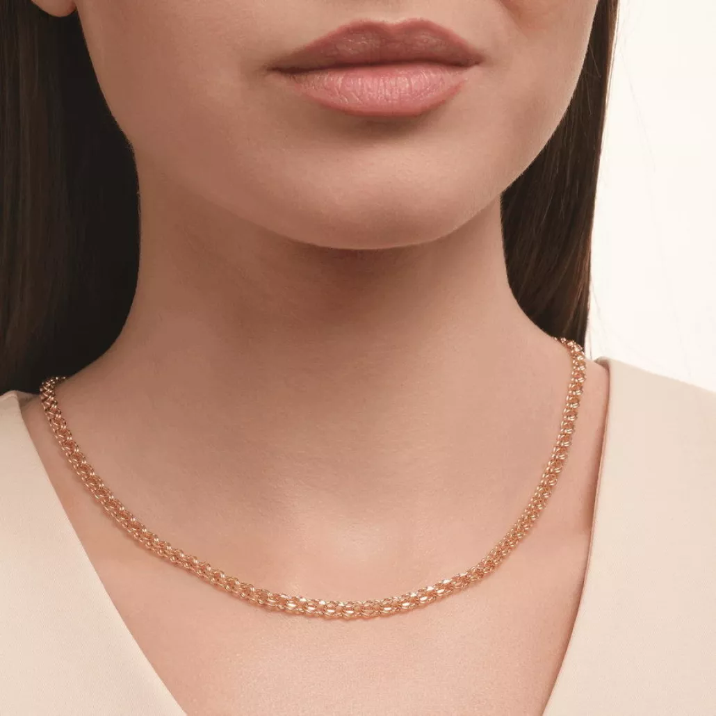 Золотая цепочка 585 на шею, плетение бисмарк, длина 45 см, цвет красное золото