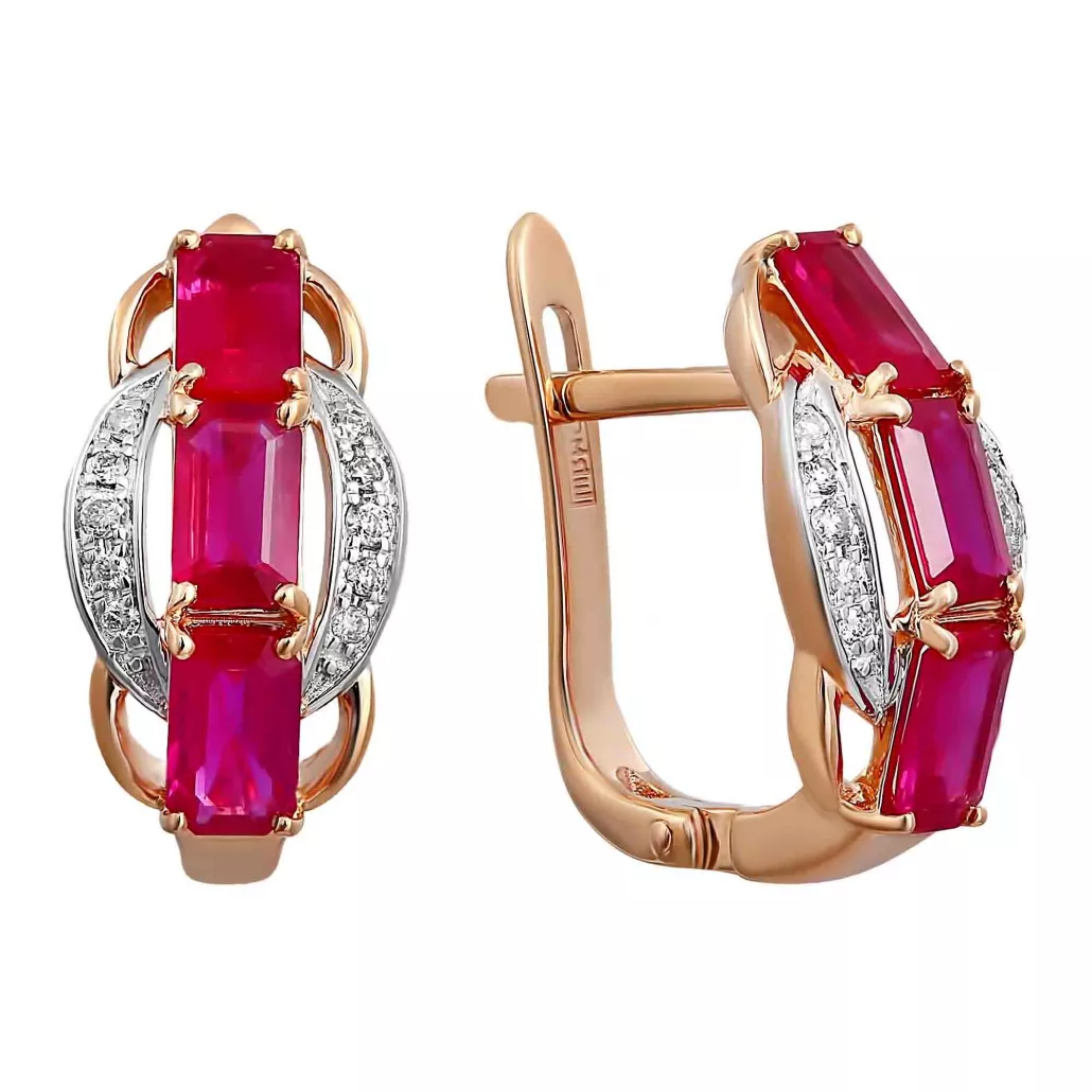- Золотые серьги 585, женские, с бриллиантом и рубином