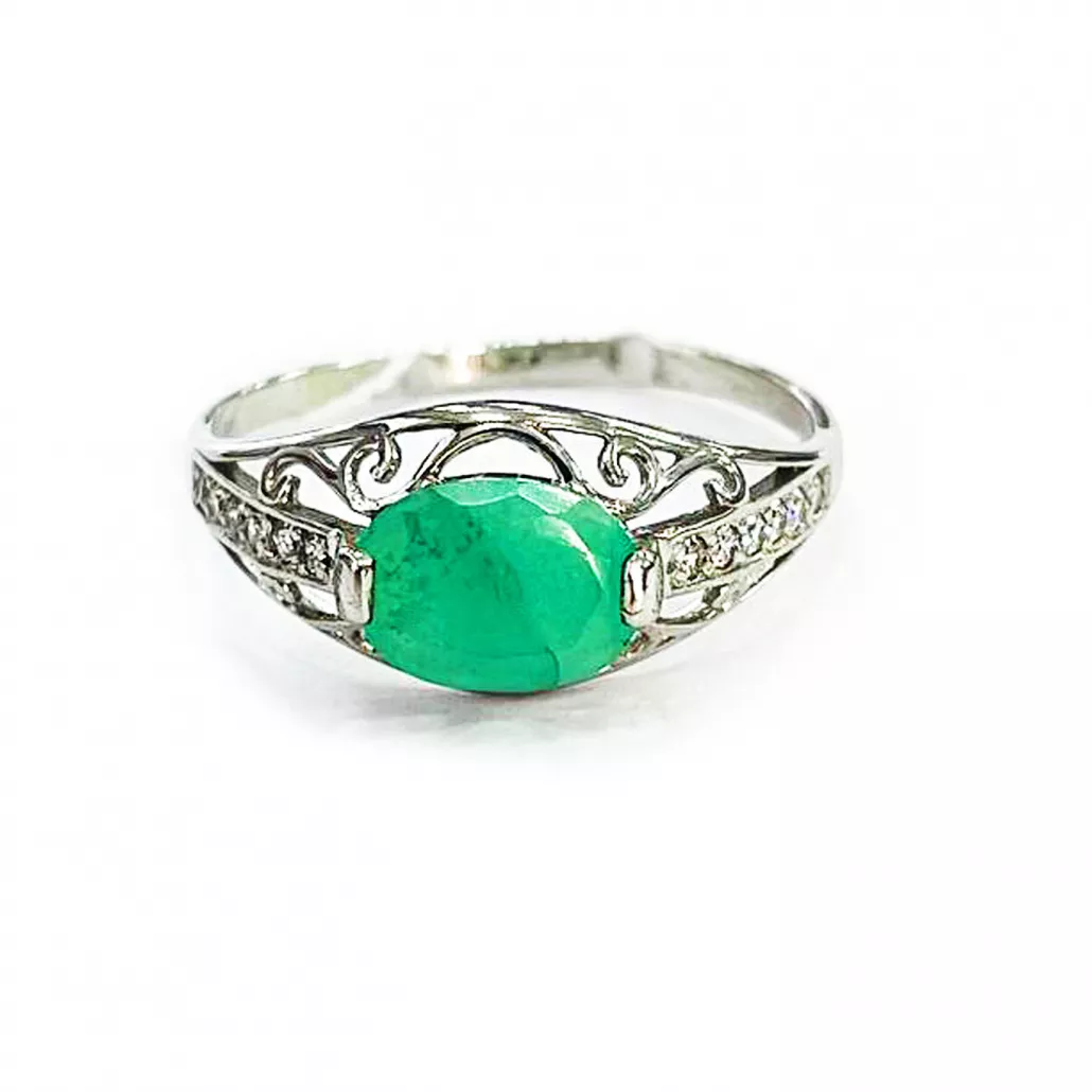 Серебряное кольцо 925, женское, с изумрудом и фианитом, размер 18