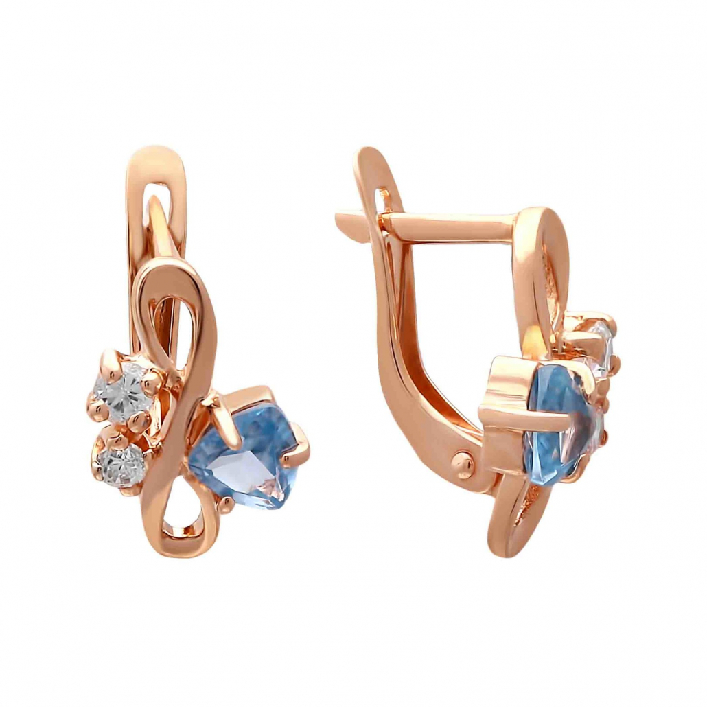 - Серьги с топазом и фианитом из золота
