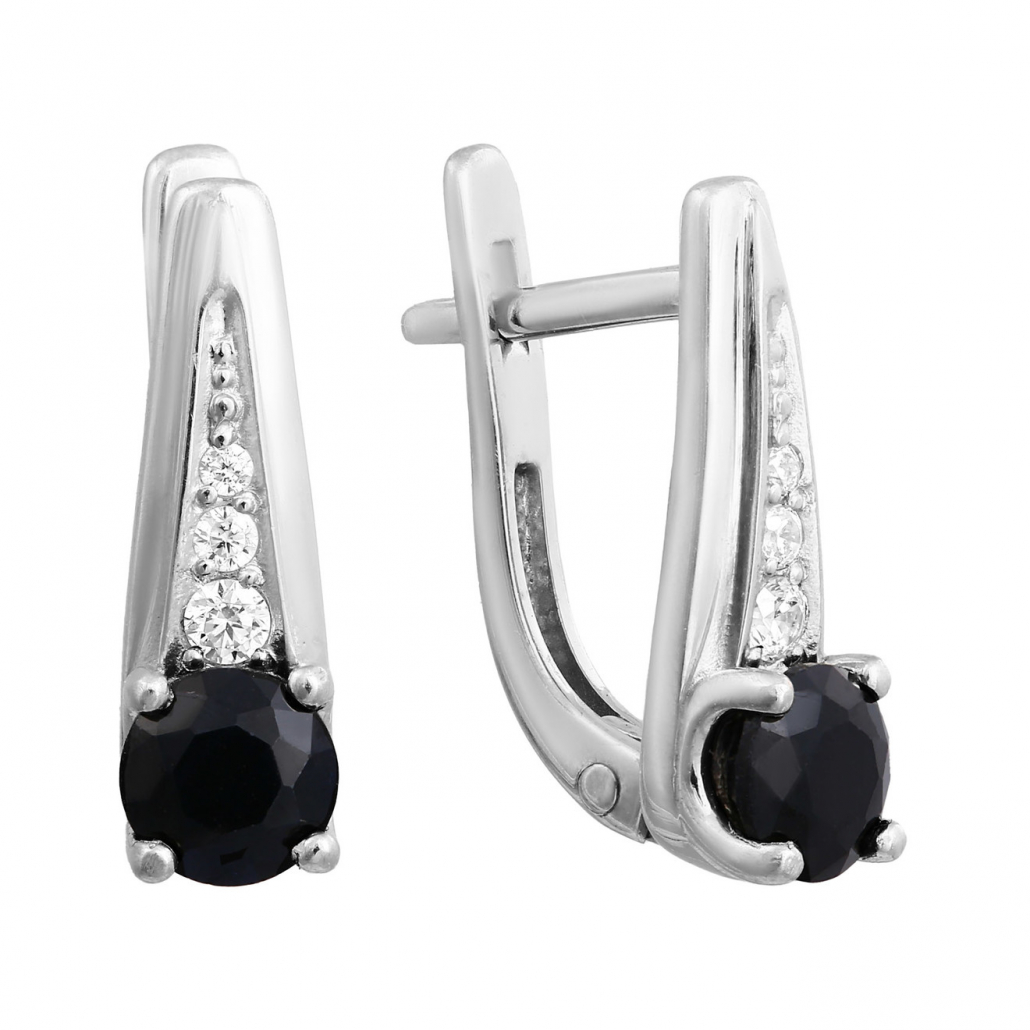 Серьги с сапфиром и фианитом из серебра
