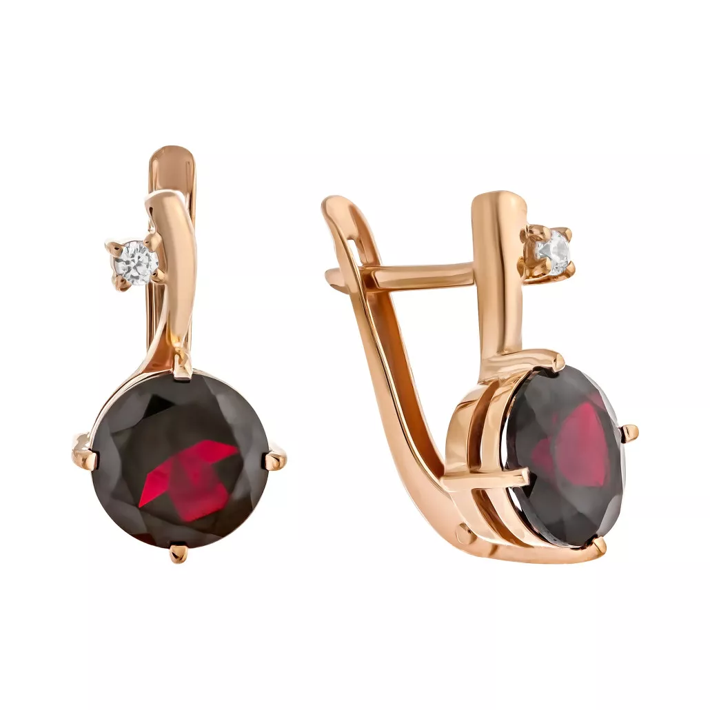 - Золотые серьги 585, женские, с фианитом и гранатом