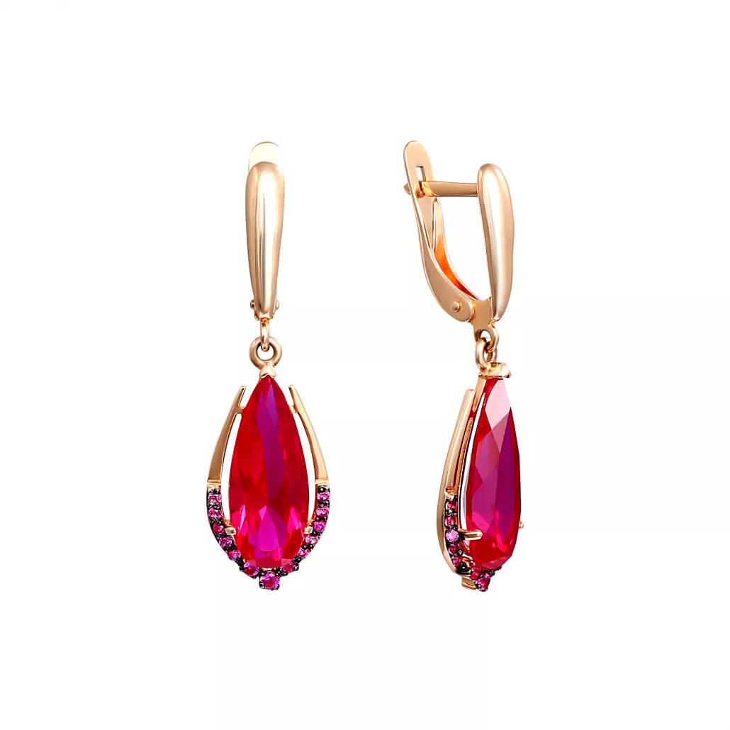 Серьги с корундом и фианитом из золота
