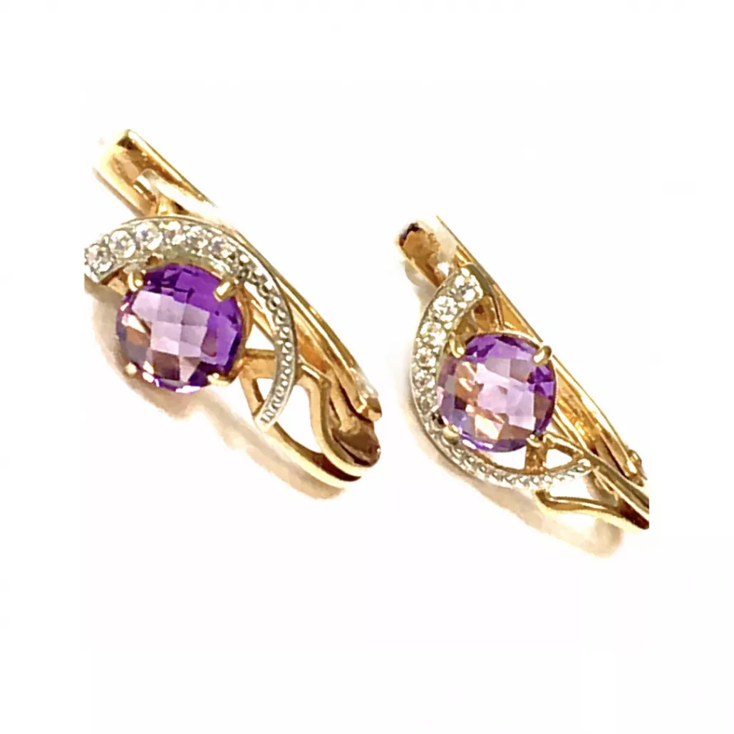 - Серьги с аметистом и фианитом из золота