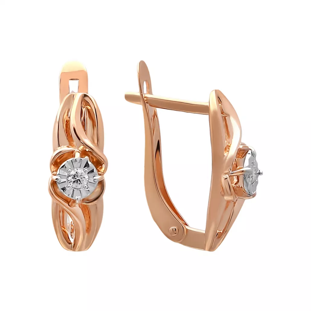 Золотые серьги 585, женские, с бриллиантом