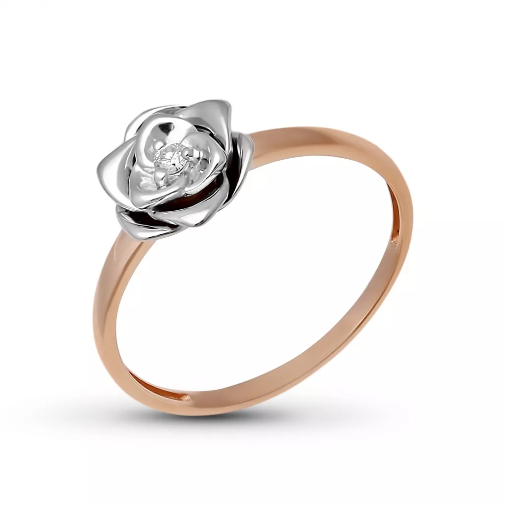 - Золотое кольцо 585, женское, с бриллиантом, размер 17