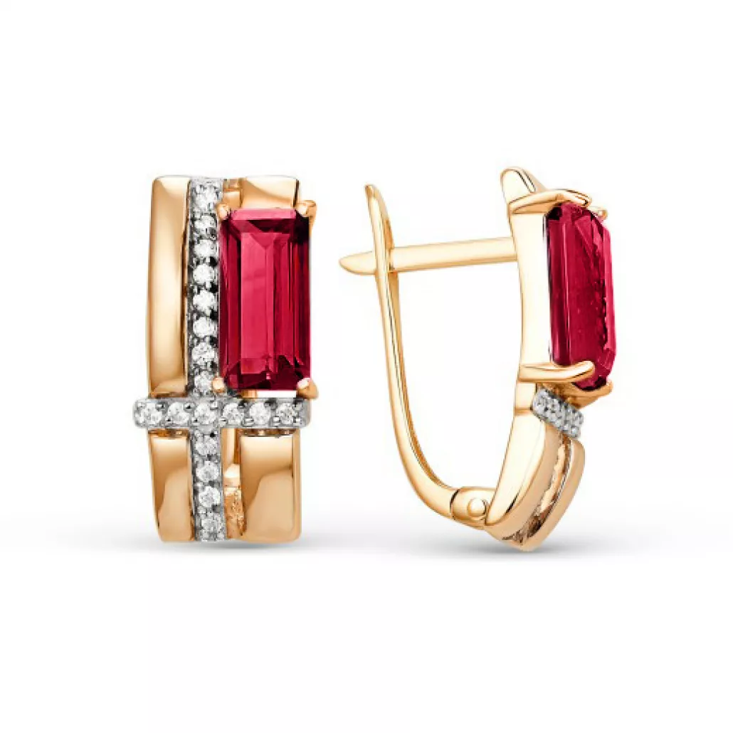 - Серьги с гранатом и фианитом из золота