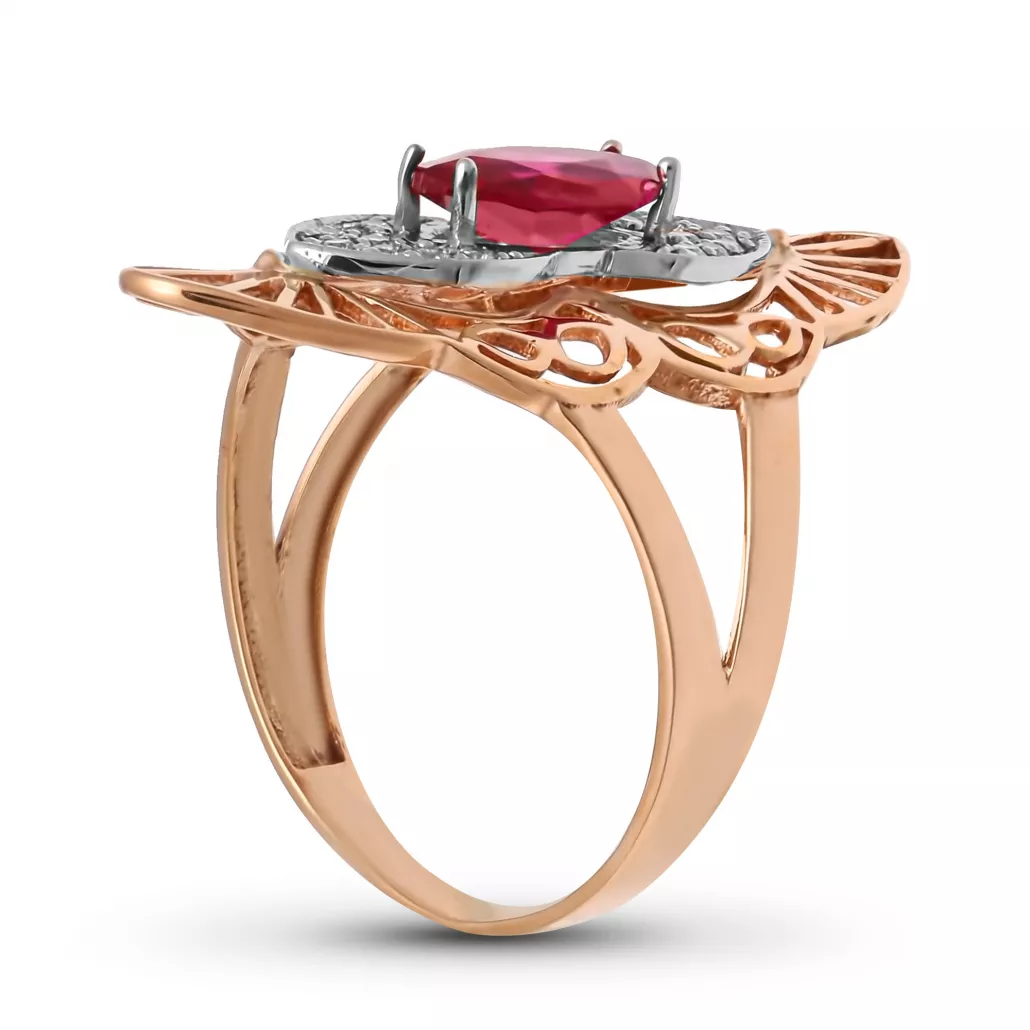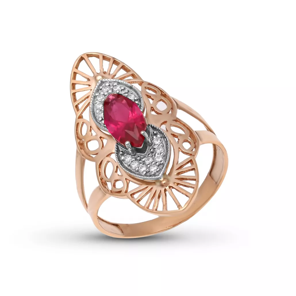 - Кольцо с корундом и фианитом из золота