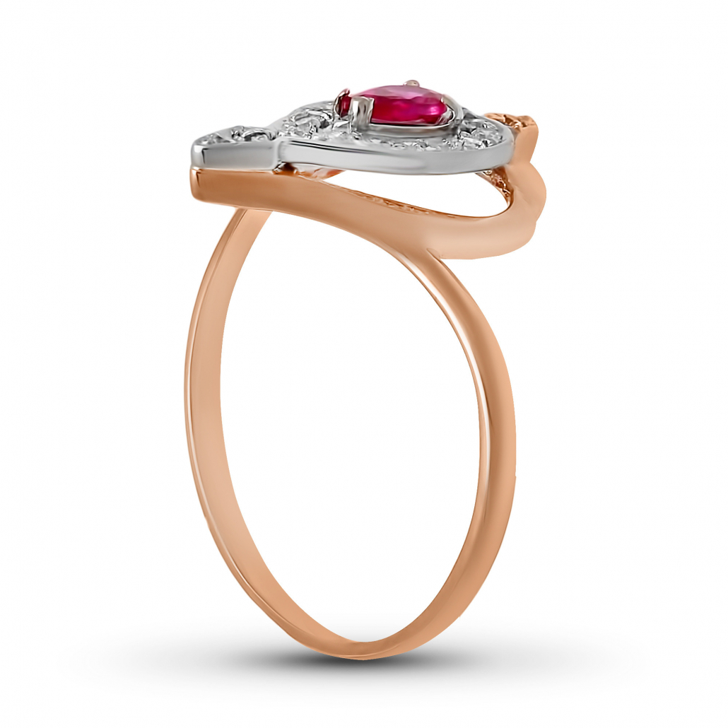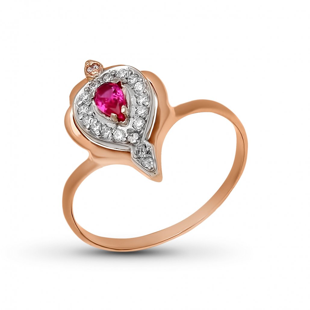 Кольцо с корундом и фианитом из золота