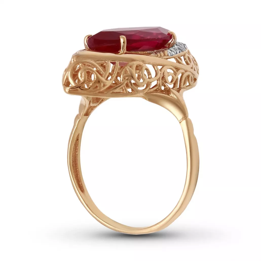 - Кольцо с корундом и фианитом из золота