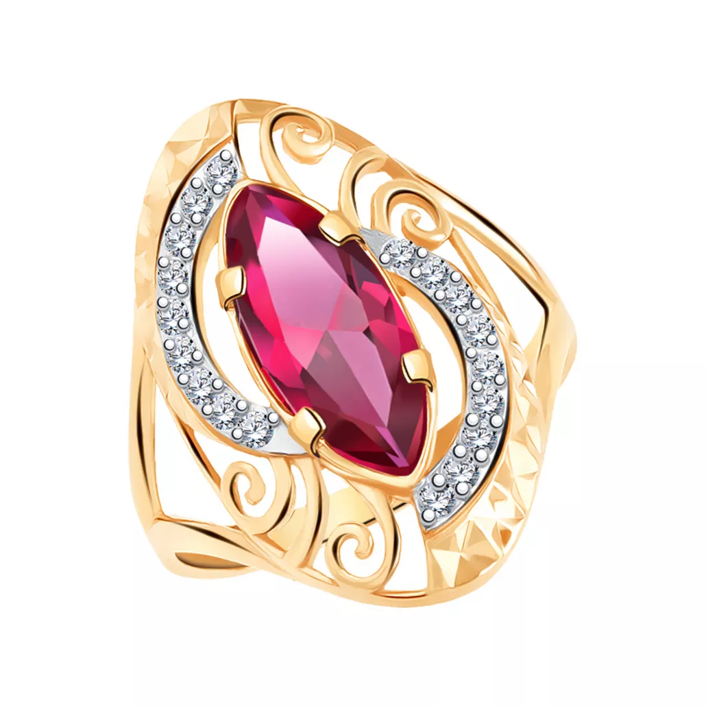 Золотое кольцо 585, женское, с фианитом, размер 20.5