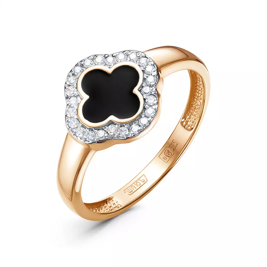 - Кольцо с фианитом и эмалью из золота