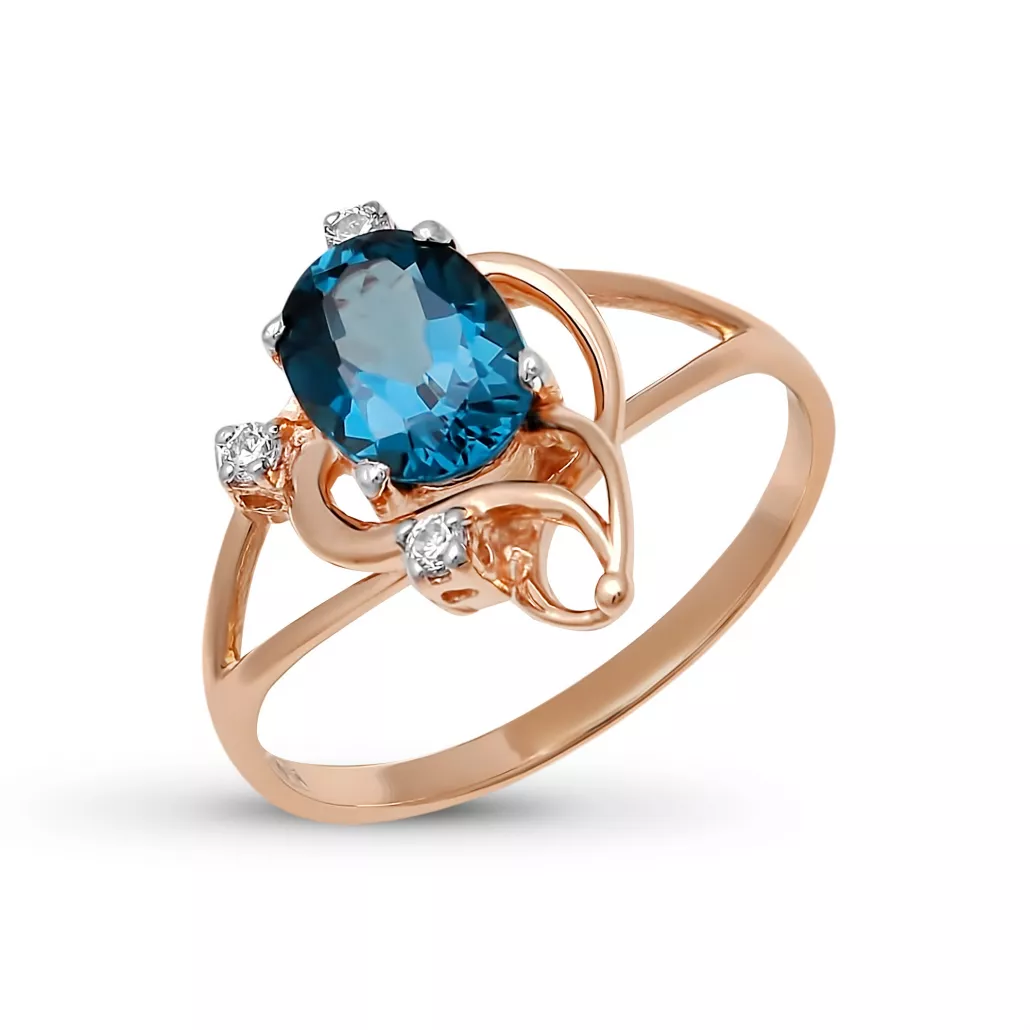 - Кольцо с фианитом и топазом из золота