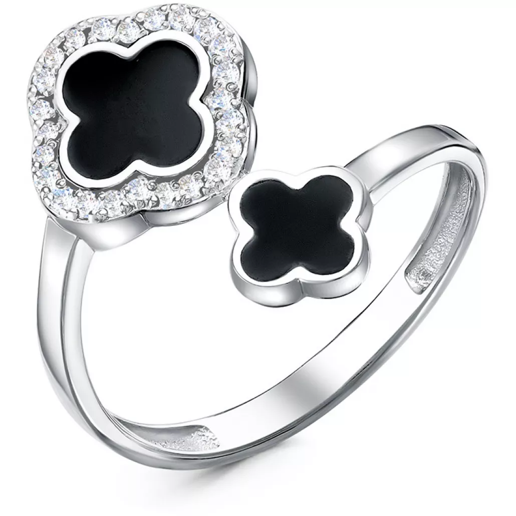 - Кольцо с эмалью и фианитом из серебра