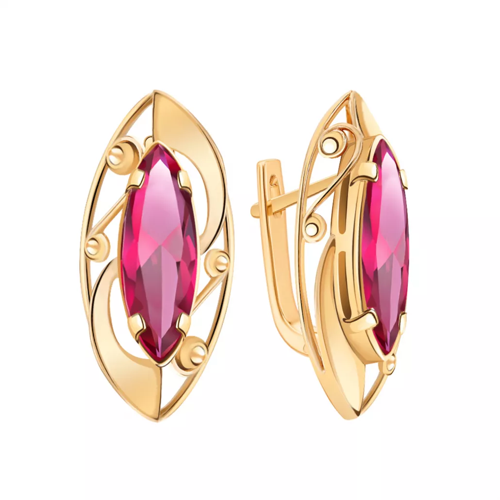- Золотые серьги 585, женские, с фианитом