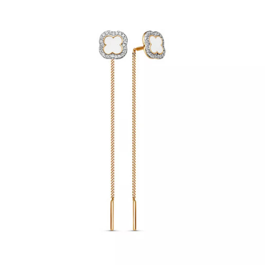 - Золотые серьги 585, женские, с фианитом и эмалью