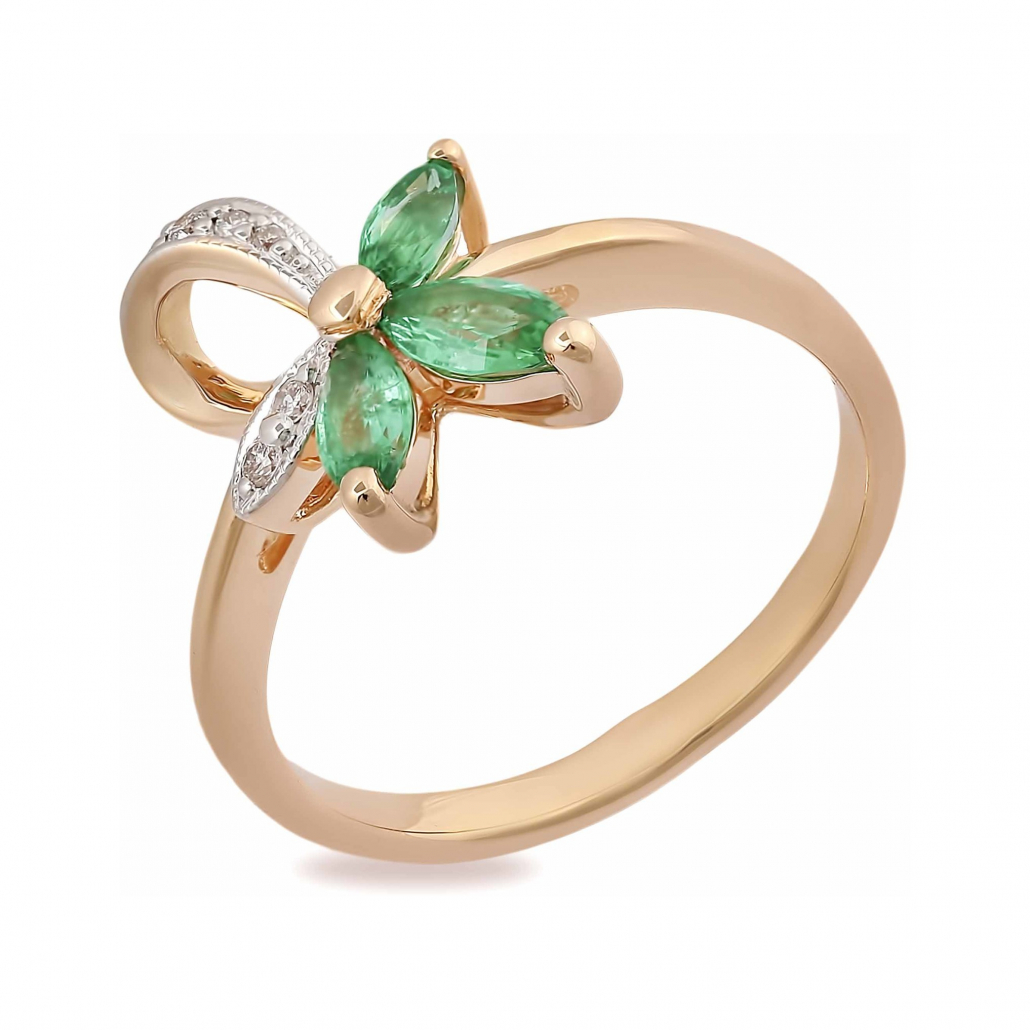 - Золотое кольцо 585, женское, с бриллиантом и изумрудом, размер 16