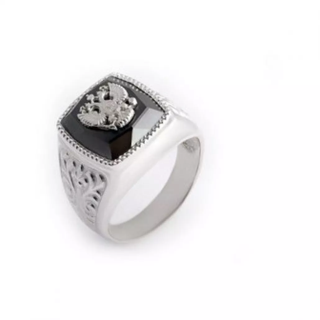 - Кольцо-печатка с эмалью и фианитом из серебра