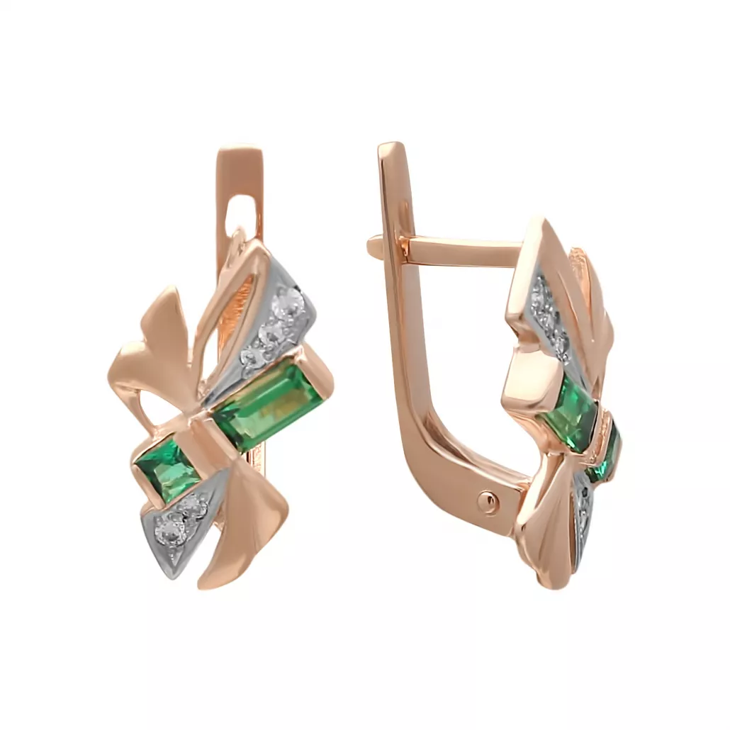 Золотые серьги 585, женские, с фианитом и изумрудом Артикул: 114036 наноизм.