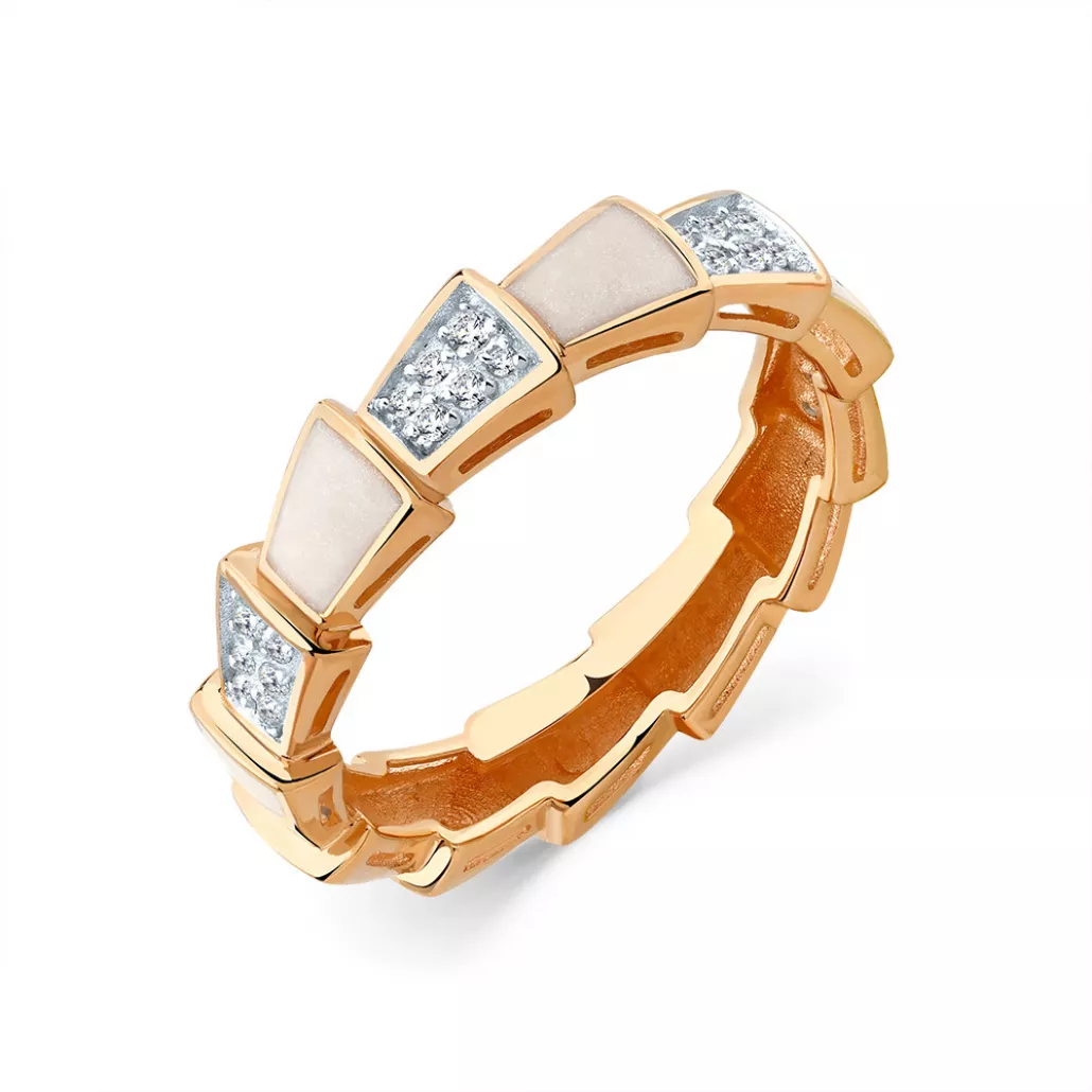 - Кольцо с фианитом и эмалью из золота