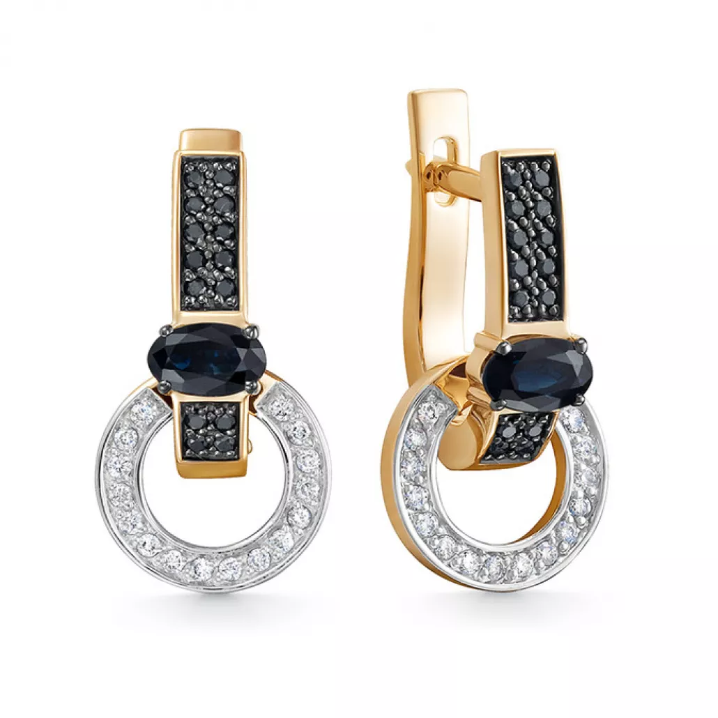 - Серьги с бриллиантами с сапфиром из золота