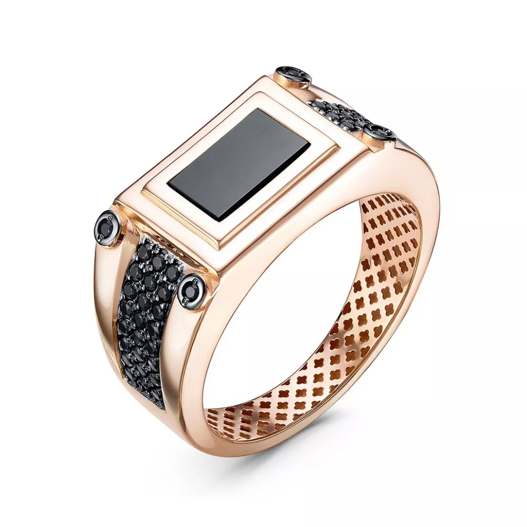 - Кольцо-печатка с фианитом и ониксом из золота