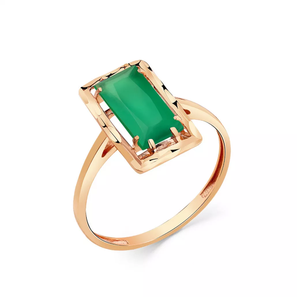 - Золотое кольцо 585, женское, с агатом, размер 17