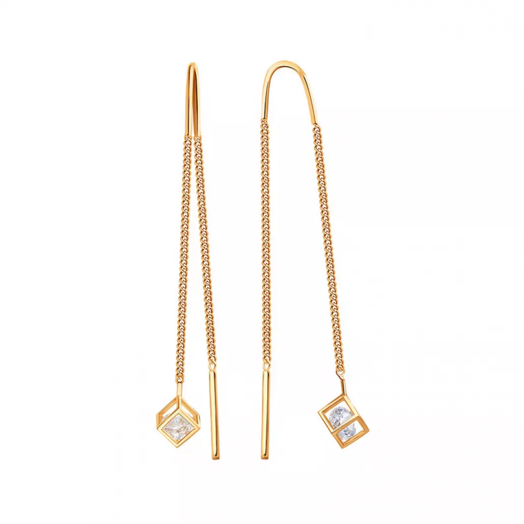 Серьги-продевки с фианитом из золота Артикул: Т107028573