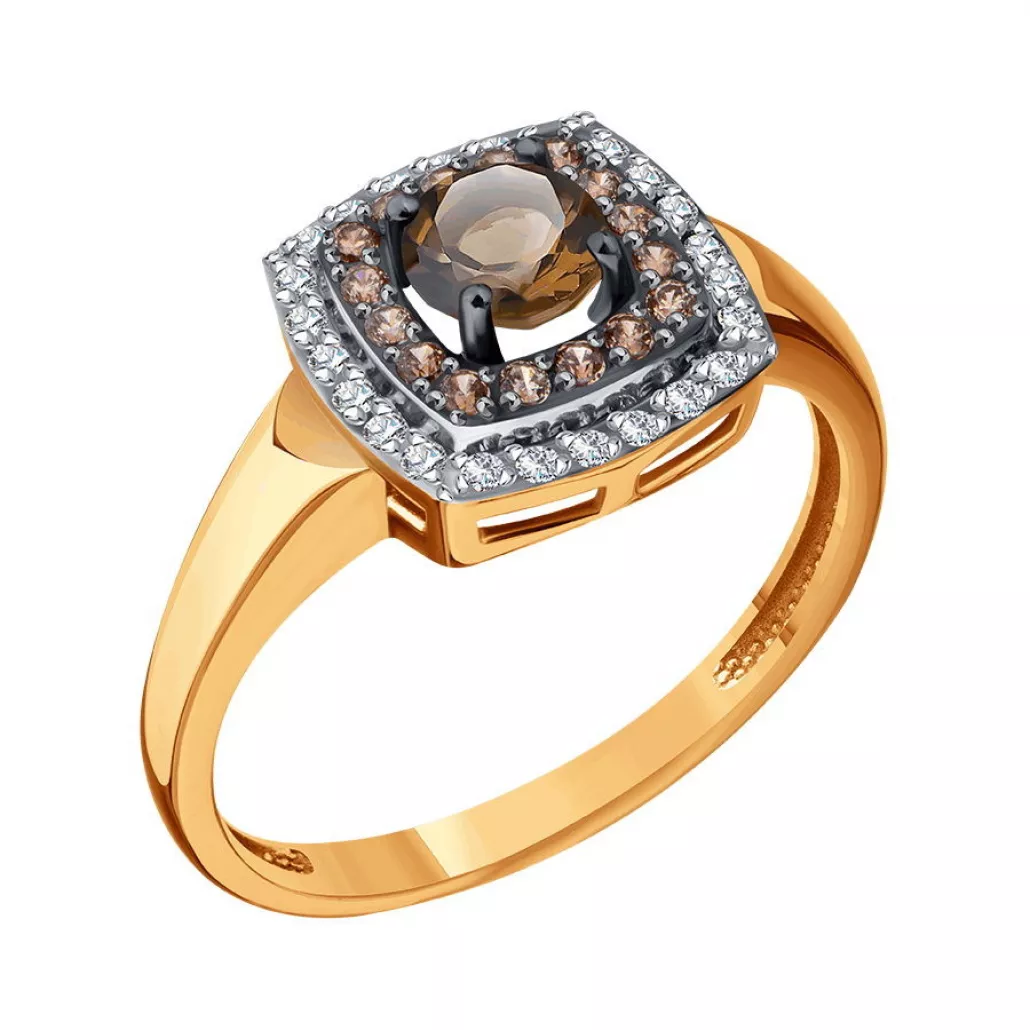 - Золотое кольцо 585, женское, с раухтопазом и фианитом, размер 18