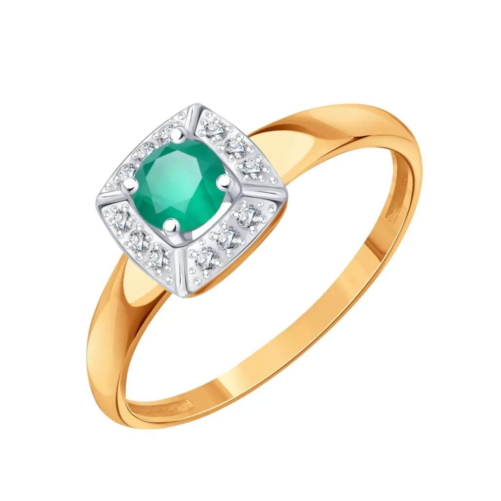 - Золотое кольцо 585, женское, с агатом и фианитом, размер 17.5