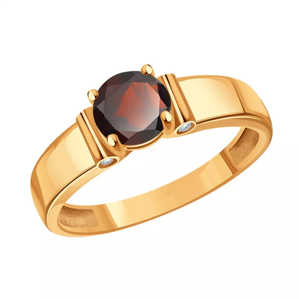 Золотое кольцо 585, женское, с фианитом и гранатом, размер 18.5 Артикул: Т10301Д016
