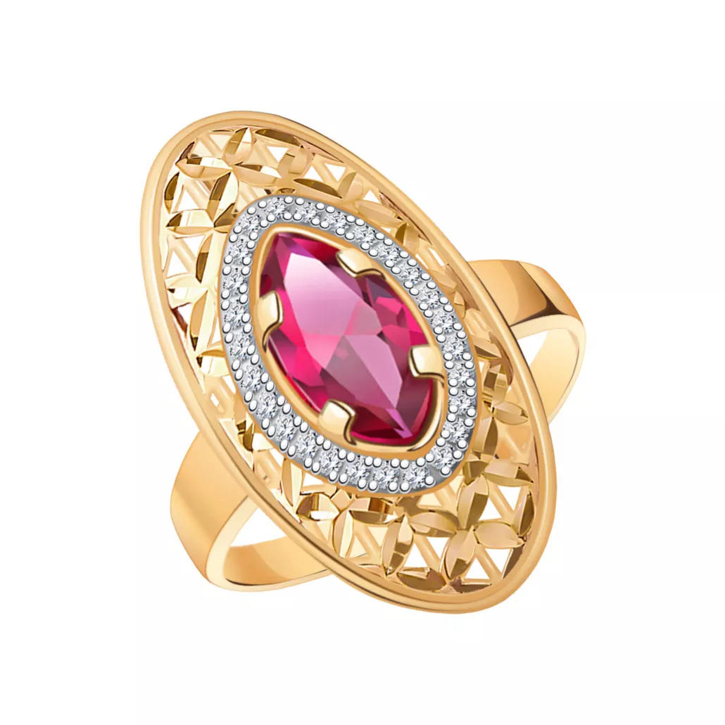 Золотое кольцо 585, женское, с фианитом, размер 20