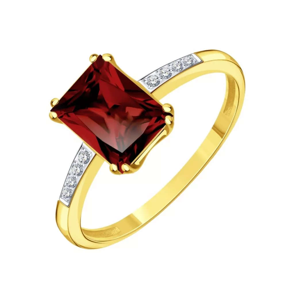 Золотое кольцо 585, женское, с фианитом и гранатом, размер 18.5