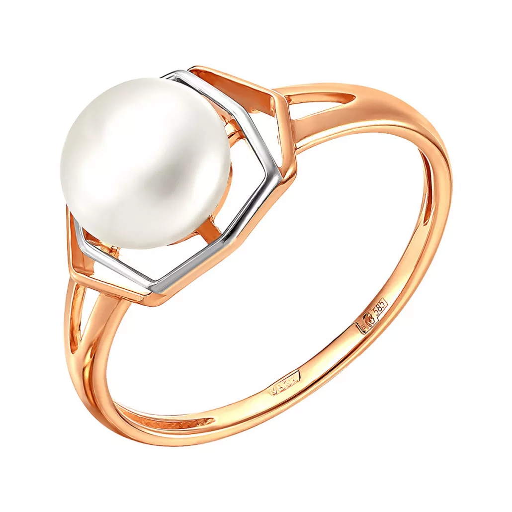- Золотое кольцо 585, женское, с жемчугом, размер 17